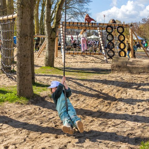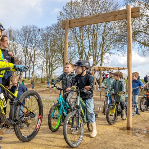 Burgemeester Joerie Minses en wethouder Vincent Arts stonden in hun openingstoespraak uiteraard stil bij de belangrijke inbreng die de kinderen bij de totstandkoming van het speelbos hebben gehad. Aansluitend werden de nieuw ontworpen vlaggen onthuld en was het tijd voor veel feestelijke en sportieve activiteiten en diverse clinics, zoals een fietsclinic door fietstalent Lotte Koopmans.