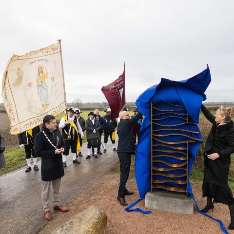 Na afloop van de herdenking werden de klokken van de Heilige Antonius Abt-kerk geluid. Het klokkengelui in Overasselt kreeg vervolgens navolging in alle kerktorens in het Land van Maas en Waal. Een klein gezelschap waaronder onze burgemeester, de dijkgraaf en de commissaris begaf zich vervolgens naar de Maasdijk naar de plek waar deze 100 jaar geleden waarschijnlijk doorbrak om ter plaatse het kunstwerk van de hand van de Overasseltse kunstenaar Leo Gerritsen te onthullen. Dit kunstwerk zal ons blijvend herinneren aan de dijkdoorbraak.