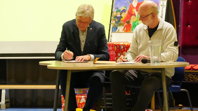 Tijdens het Duurzaamheidscafé op donderdag 27 november hebben wethouder Wim Wink en Ben Bottema, voorzitter van Heumen Duurzaam en Groen (HD&G), een samenwerkingsovereenkomst ondertekend.