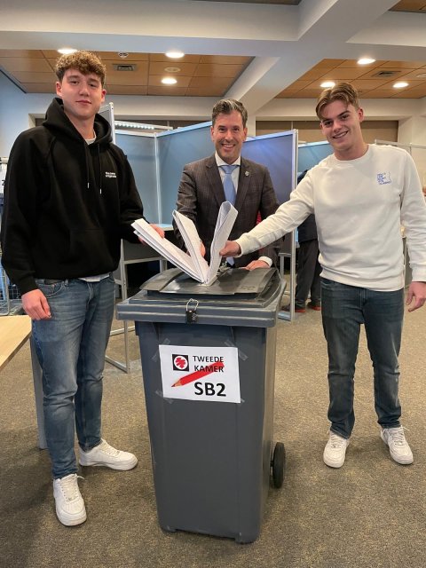 Gisteren waren de Tweede Kamerverkiezingen. Burgemeester Minses bracht zijn stem uit samen met Tijmen Eggenhuizen en Jasper Bouman. Beiden werden op 25 oktober jl. 18 jaar en mochten dus voor het eerst in hun leven stemmen. Ze waren op dat moment de jongste stemgerechtigden van de gemeente Heumen. Tijmen en Jasper gingen enthousiast in op de uitnodiging van de burgemeester om samen met hem naar de stembus te gaan!