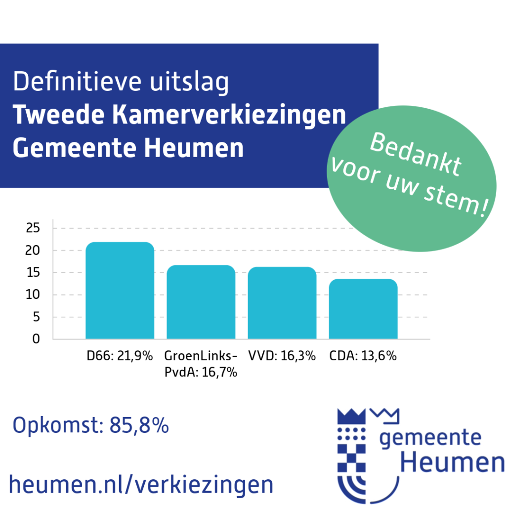 Ga voor de volledige uitslag, de processen-verbaal, overzicht stemmen per partij en opkomstcijfers per locatie naar onze uitslagpagina.